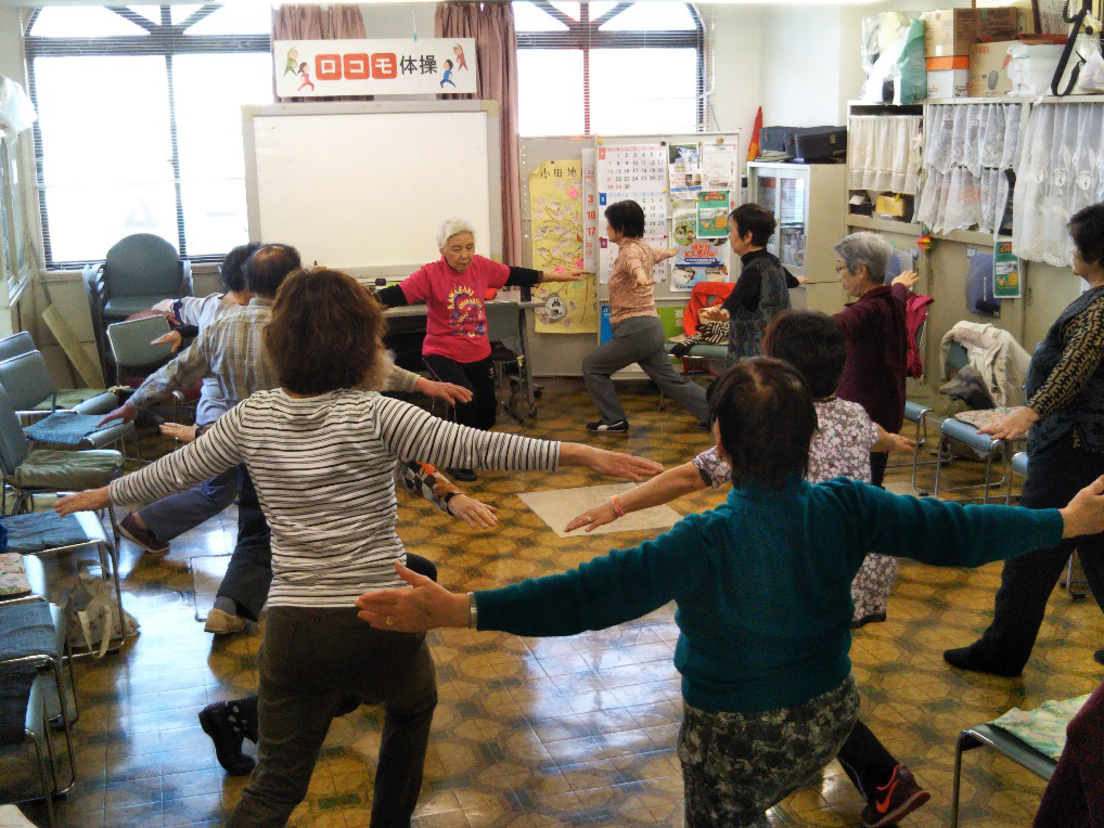 ロコモ体操を少し軽めにしたものです。認知症予防にも効果があるといわれています。基本的に座った姿勢で体操を行います。
